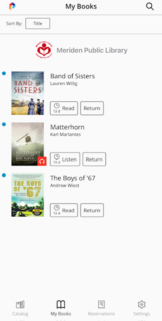 There are four categories for you to choose from at the bottom of your screen which include Catalog, My Books, Reservations, and Settings.