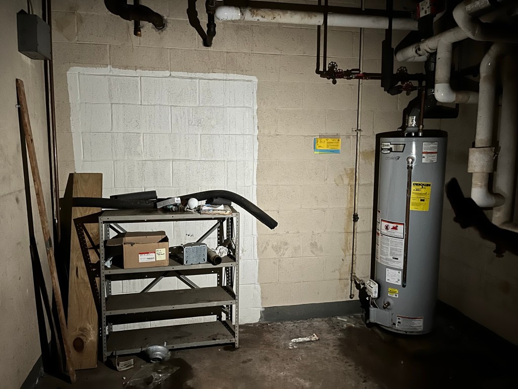 That Saturday, Mary located the main fuse boxes in the HVAC room off of the Creepy Hallway. A large HVAC system had been installed in the 1980s when the Old Church had been connected to the Old Bank. Until then, the room had been an easy-to-access work room. Now, stuffed with large pipes and other HVAC equipment, the room has become all but abandoned. The HVAC equipment takes up so much space that you cannot stand up in the room. You have to crawl around it on the floor, or walk while bent double. A red chair sits in there under the low ceiling. I can only speculate why.