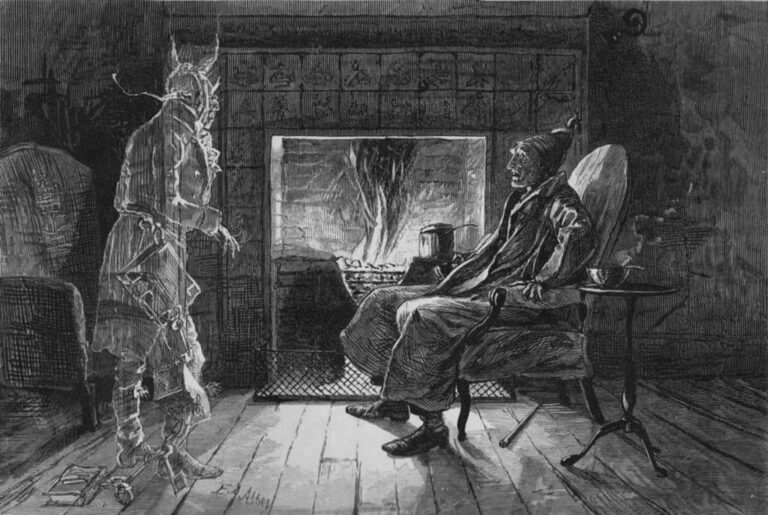In my early November post on Storytelling at Russell Library, I touched upon the tradition I’d learned about of Victorians telling ghost stories at Christmastime. Why do we tell ghost stories in December? At first, in early November before the time change, the connection puzzled me. My pondering continued as I drove home every night in the increasing dark, amid increasing reports of collisions due to the time change, and with my young child in the back seat. The answer soon became obvious: it’s scary in the dark.