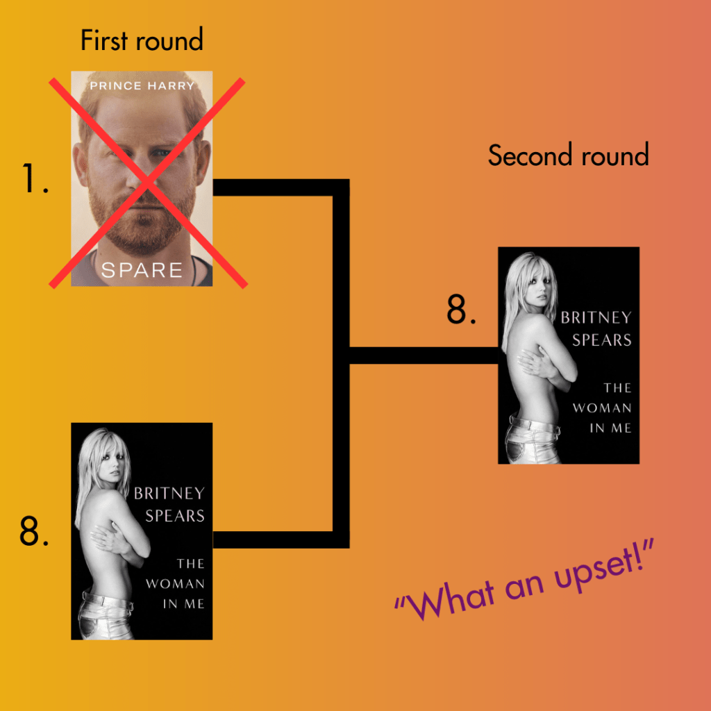 As you can imagine, this results in some spicy first-round matchups. Prince Harry vs Britney Spears in the first round? Count me in! Read on to see all of the first round matchups.