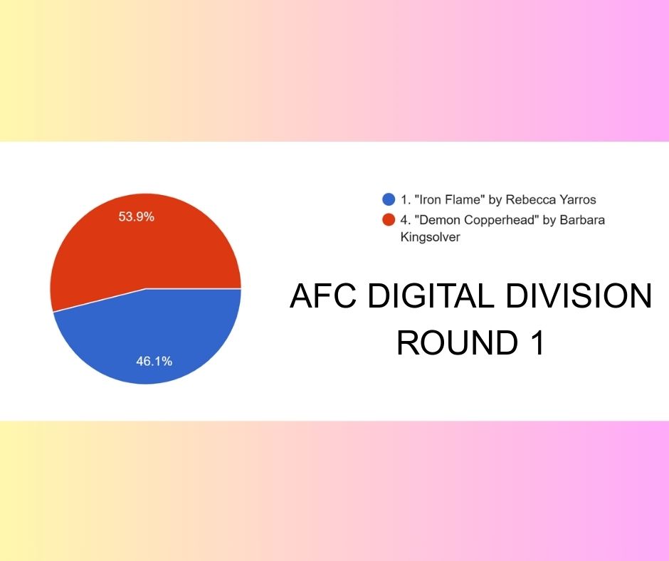 If any book could challenge The Women, it might be one from the AFC digital division. Headlining this division are two novels from Rebecca Yarros’ wildly popular romantasy series, Fourth Wing and Iron Flame. There is also Demon Copperhead by Barbara Kingsolver, returning to the Tournament of Books after a trip to the Formidable Four last year. Would one of these three books be the one to face off against The Women?