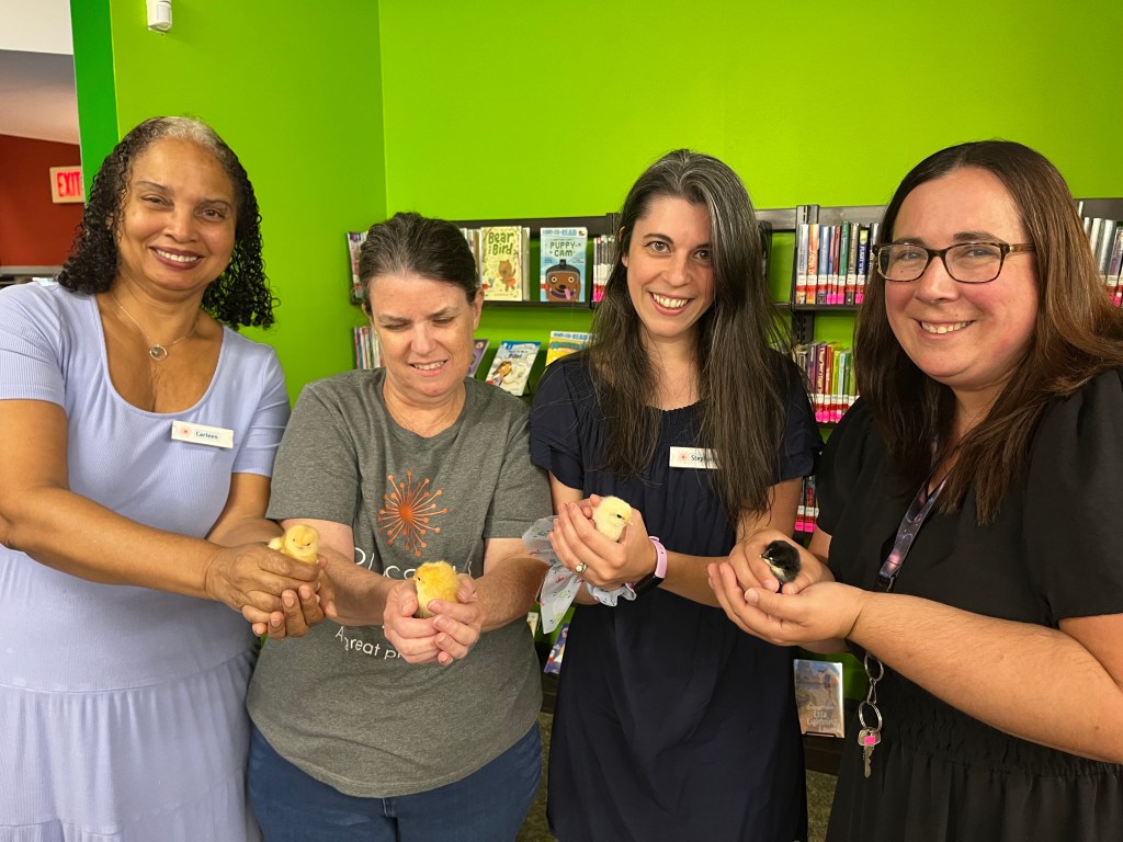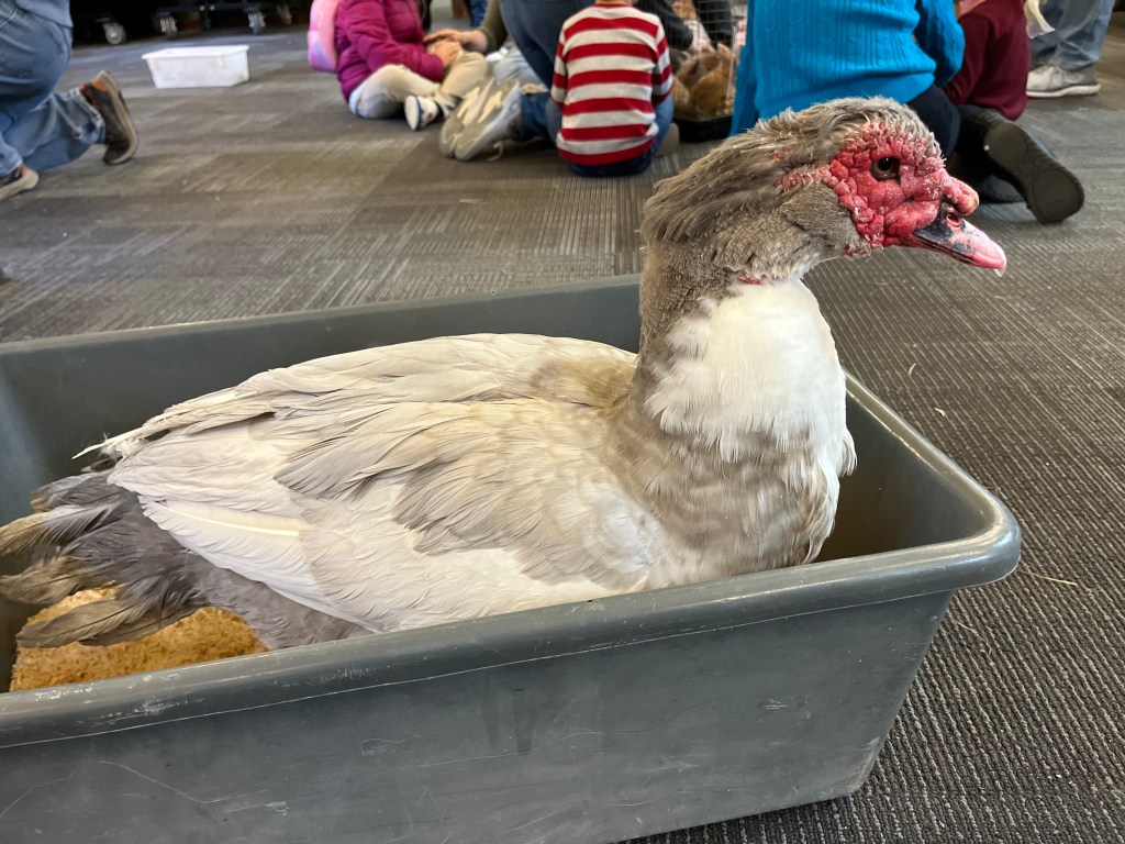 We know for certain that we will be hatching our first set of duck eggs in August 2026, also from Rent the Chicken. The duck eggs arrive Tuesday July 7, hatch around Monday August 3rd, and go back to their farm on Tuesday, August 11th. Because the ducklings grow bigger and faster than their chick cousins, they can’t fit in their cage at the library as long as the chicks. To make the most our of their visit, join us for our new “Date with a Duck” programs on Saturday, August 8th at the kids’ desk at 10:30am and 3:30pm.